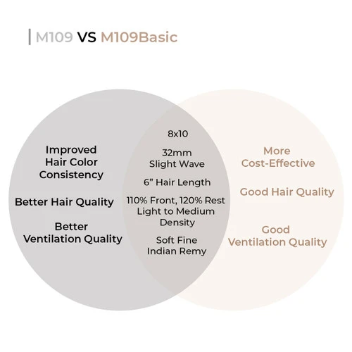 For an affordable mono top French lace front hair system, look no further than the M109 Basic. This is a more affordable version of the regular M109, but still maintains the natural-looking hairline, durability and ease of installation, cleaning and maintenance. All in all, it’s a great choice for those who want the best of many worlds while saving costs.